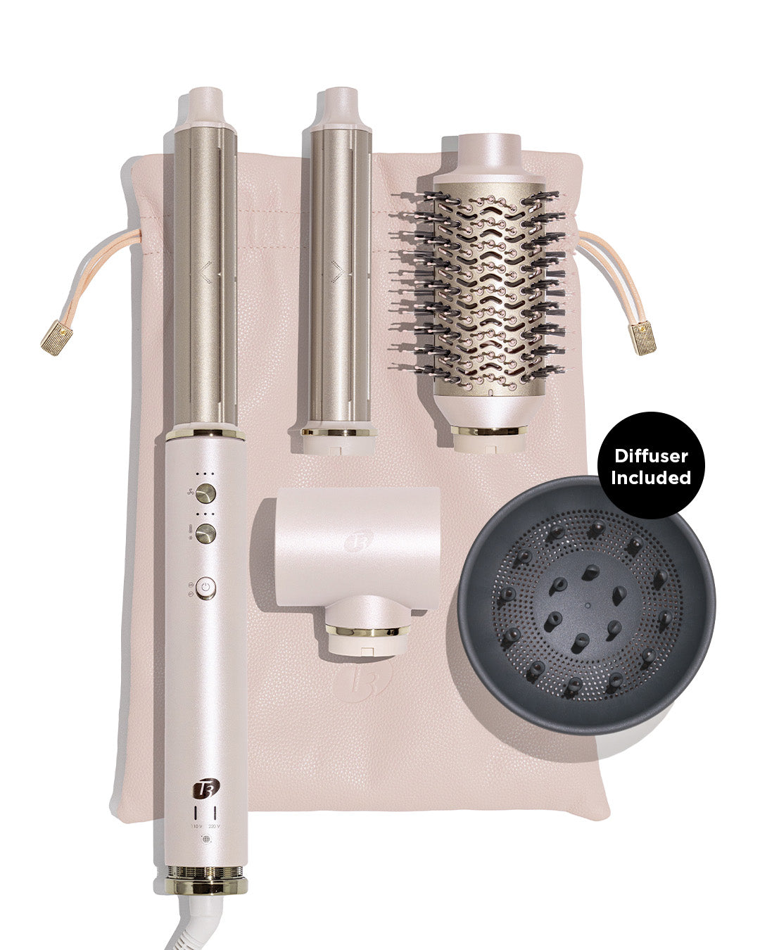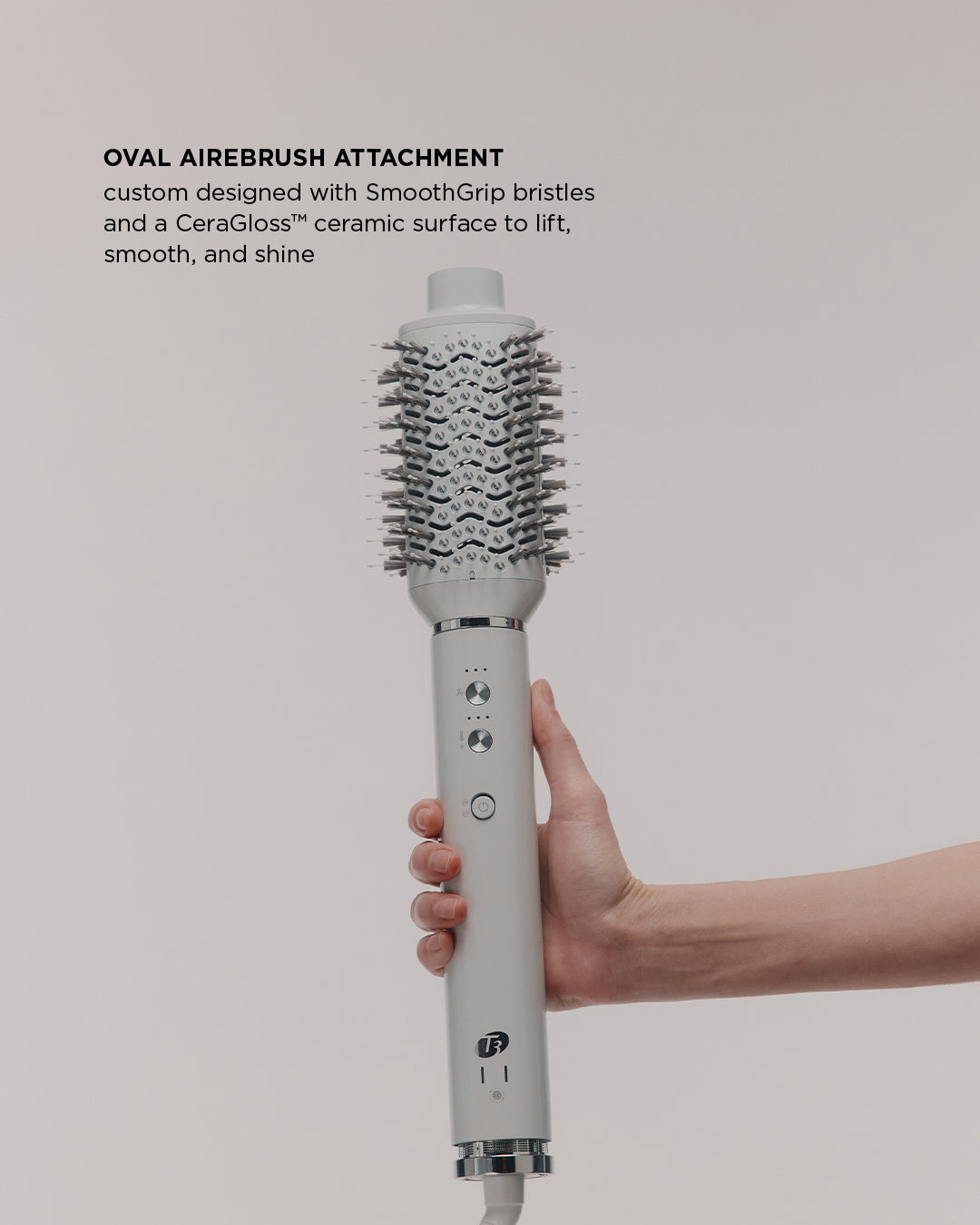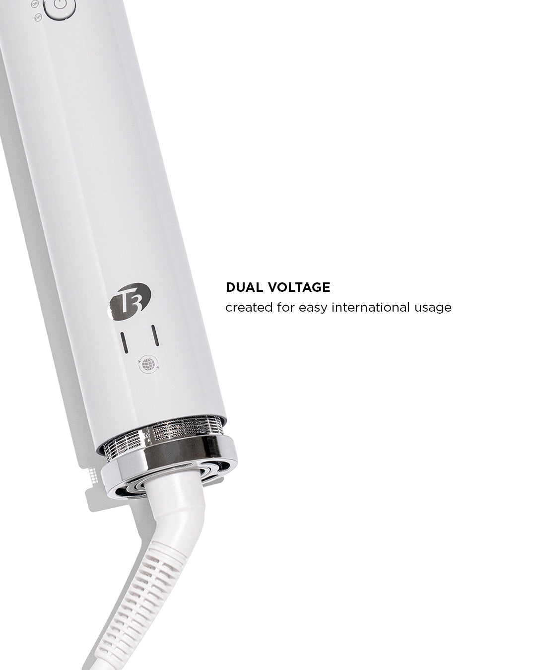 The new Aire 360 is our iconic bestseller—now reimagined for wherever you style. Designed to be more compact and travel-ready, this upgraded version features a shorter handle, lighter base, refined air intake and filter system, plus dual voltage for effortless styling anywhere in the world. Custom-blend CeraGloss™ ceramic attachments distribute heat evenly to help prevent hot spots, smooth the cuticle, enhance shine, and minimize damage—so your blowout looks glossier and lasts longer. Powered by T3 Aire 360 technology, it gathers hair to form curls using air for bouncy blowouts and lasting shape. Ceramic barrels lock in shine, the oval brush smooths and lifts, the SoftAire® drying concentrator delivers fast-yet-gentle drying.
